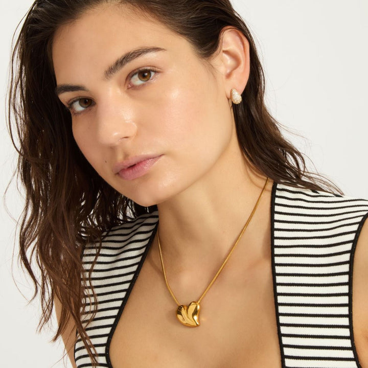 Tarnish Resistant 18k Gold Plated Oversized Puffy Heart Necklace