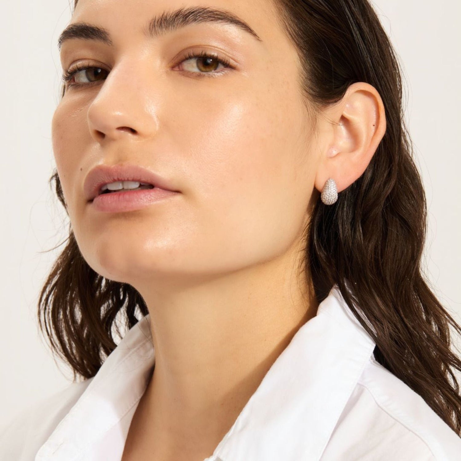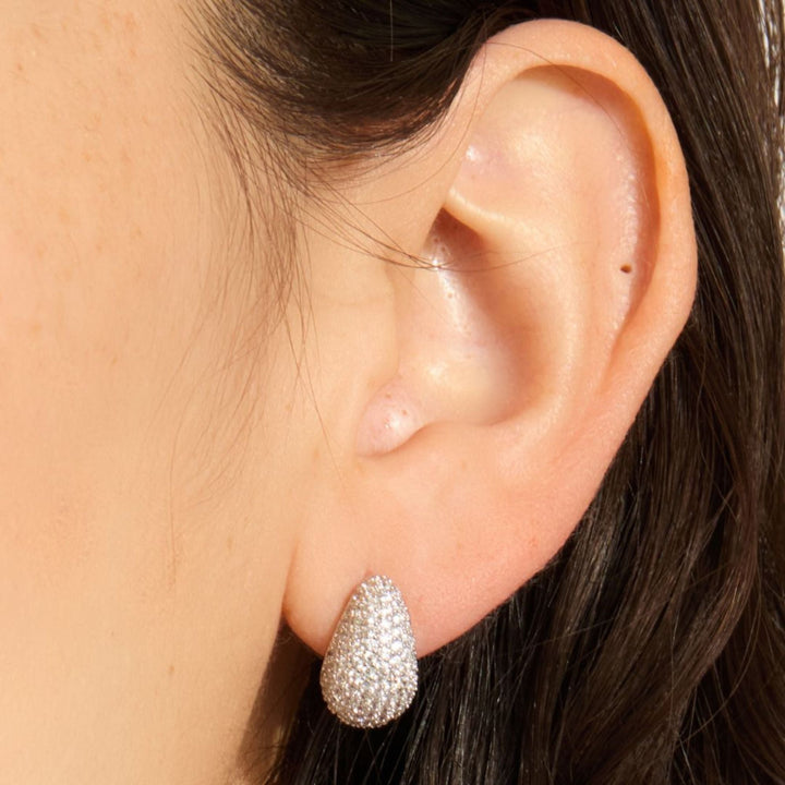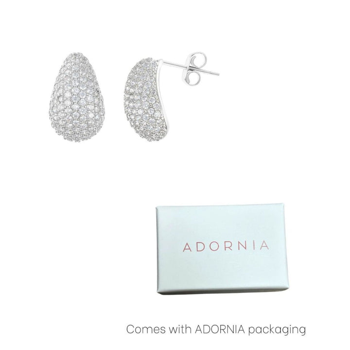 The Sterling Silver Plated Teardrop Pave Earrings by Adornia combine classic elegance with modern luxury. The teardrop shape is embellished with pave-set crystals, making these earrings the perfect addition to both casual and formal outfits.