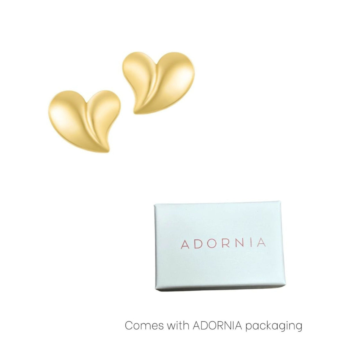 These Tarnish Resistant 18k Gold Plated Oversized Puffy Heart Earrings by Adornia are designed to add a luxurious touch to any outfit. Crafted in 18k yellow gold plated stainless steel, these statement earrings offer durability and a striking, bold look. Perfect for those who want to make a fashion statement with their jewelry.