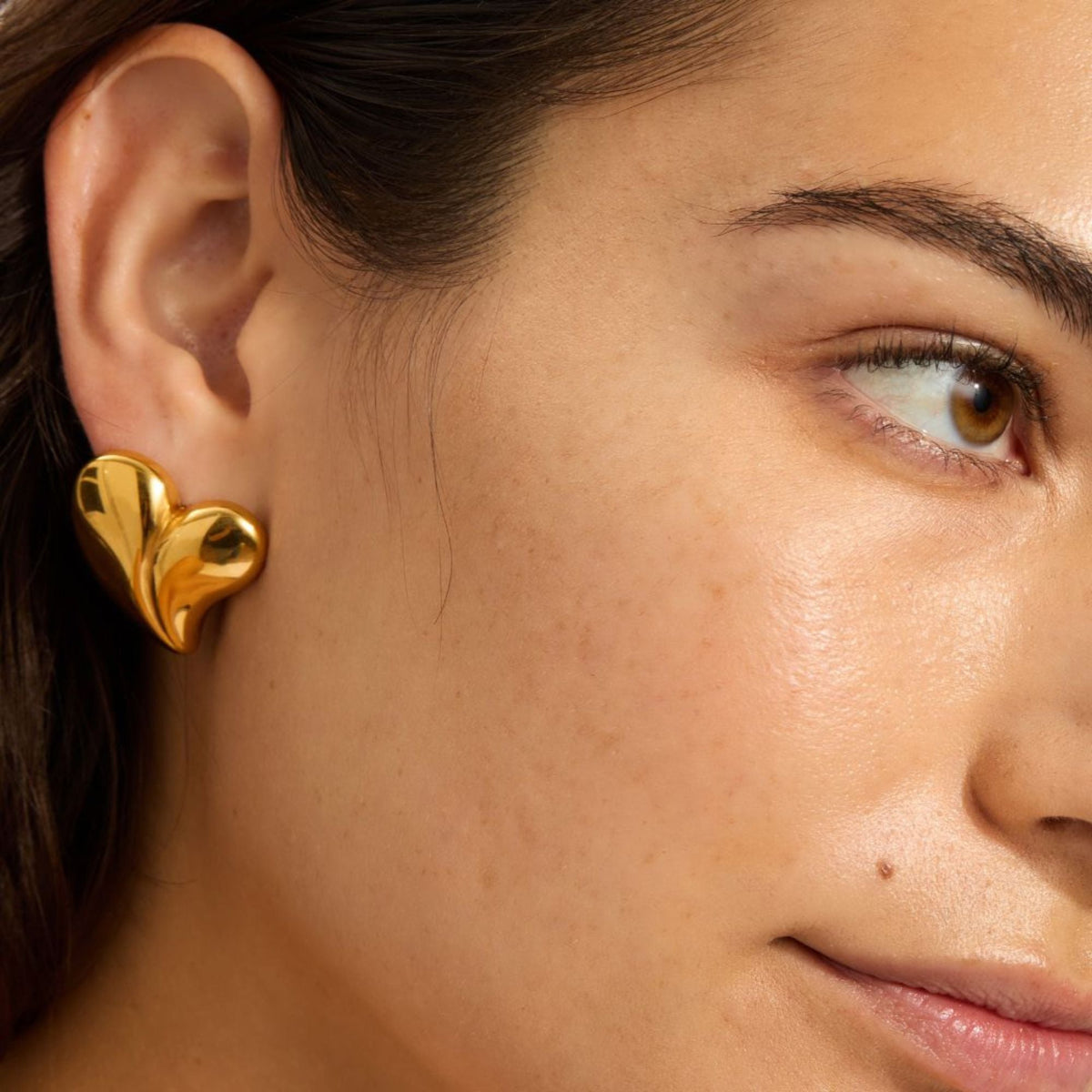 Tarnish Resistant 18k Gold Plated Oversized Puffy Heart Earrings