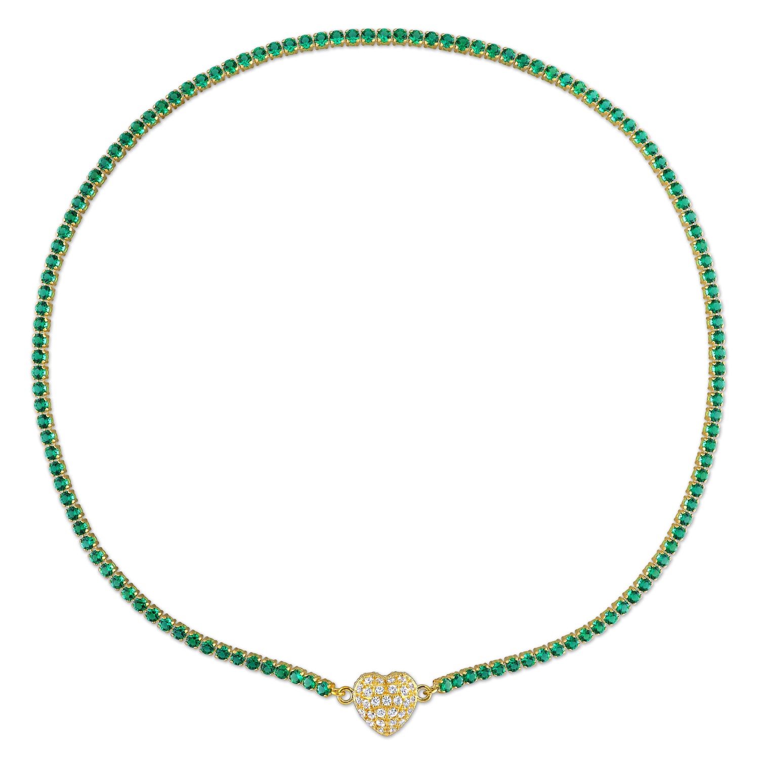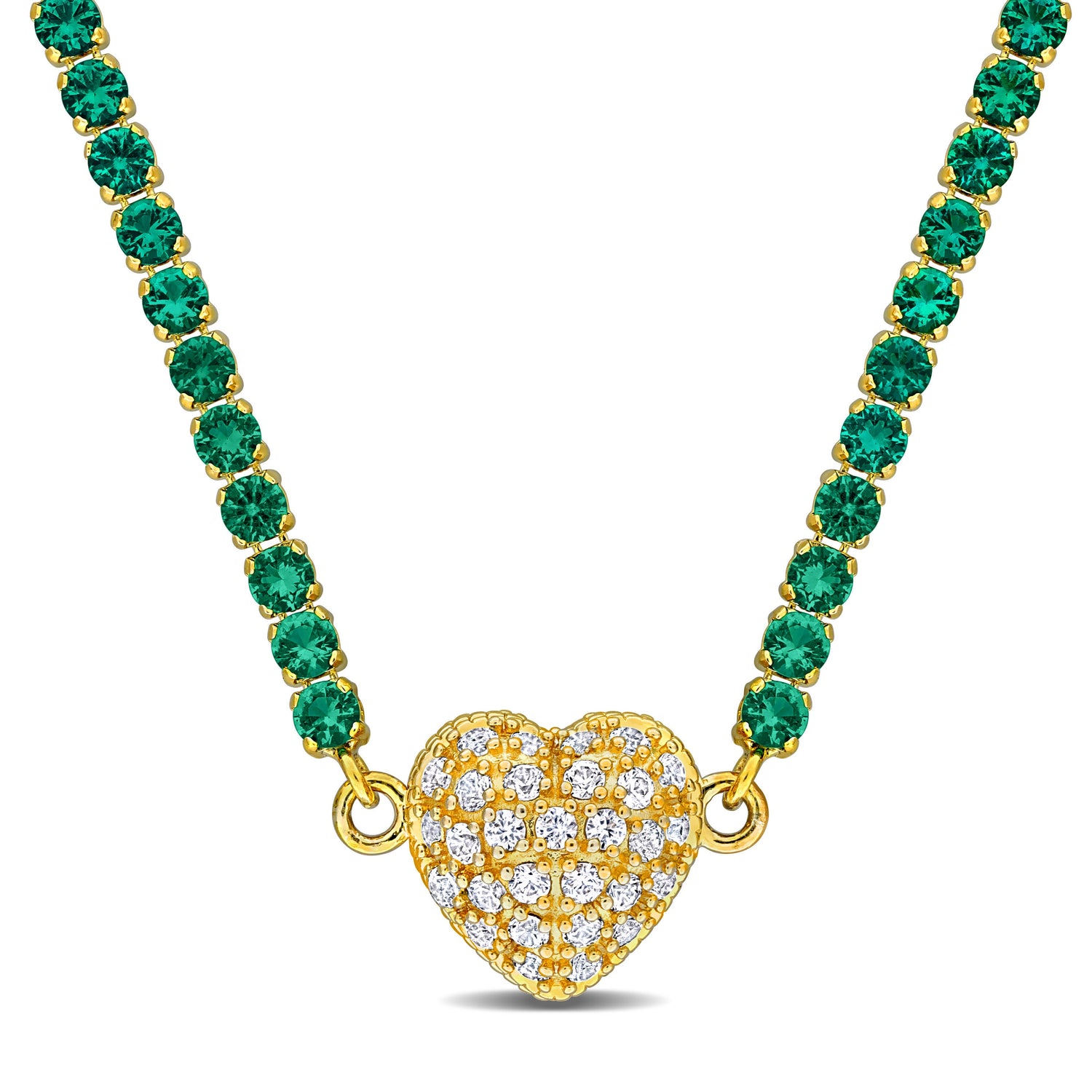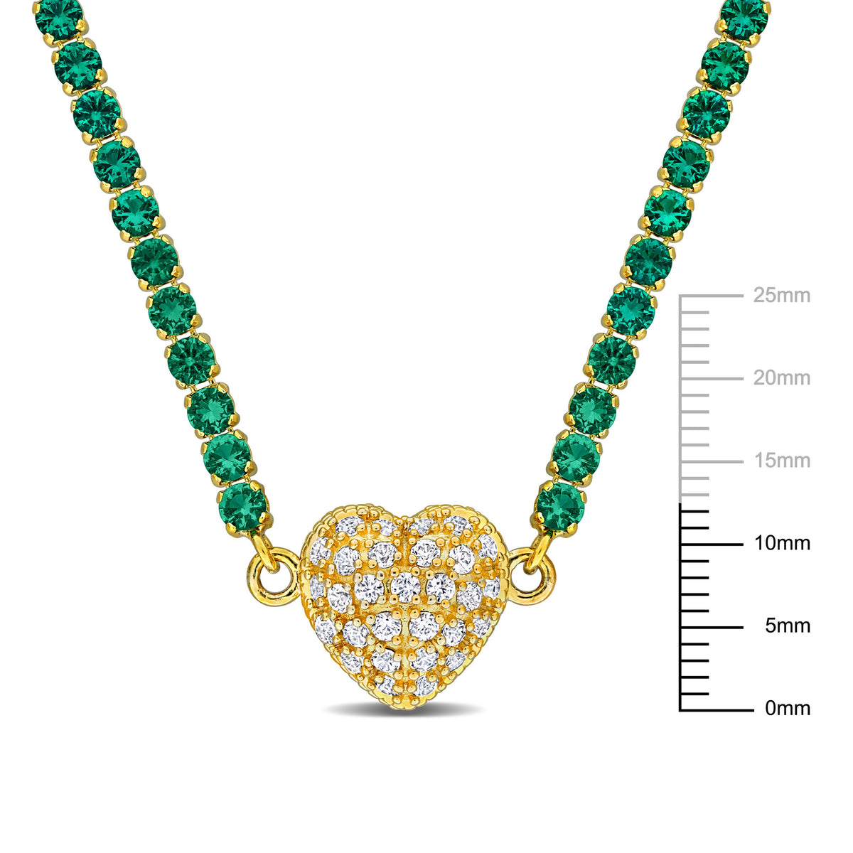 Mimi & Max 13 5/8 ct TGW Created Emerald Created White Sapphire Heart Necklace Yellow Silver