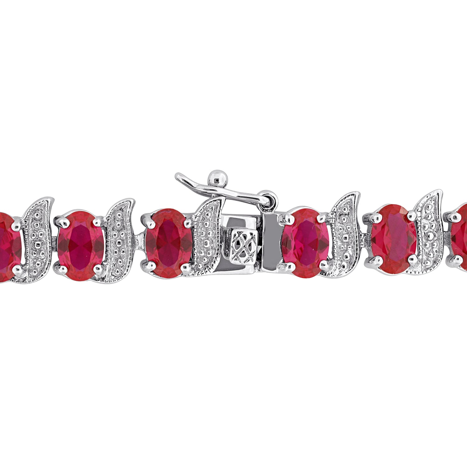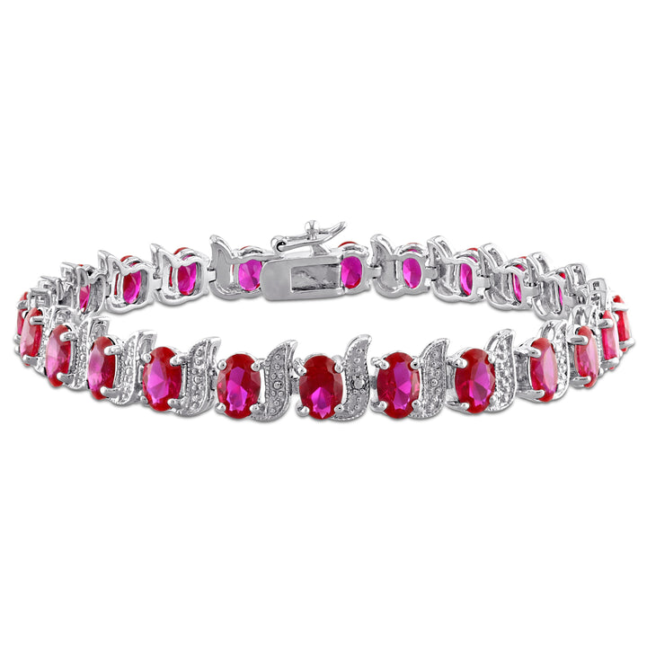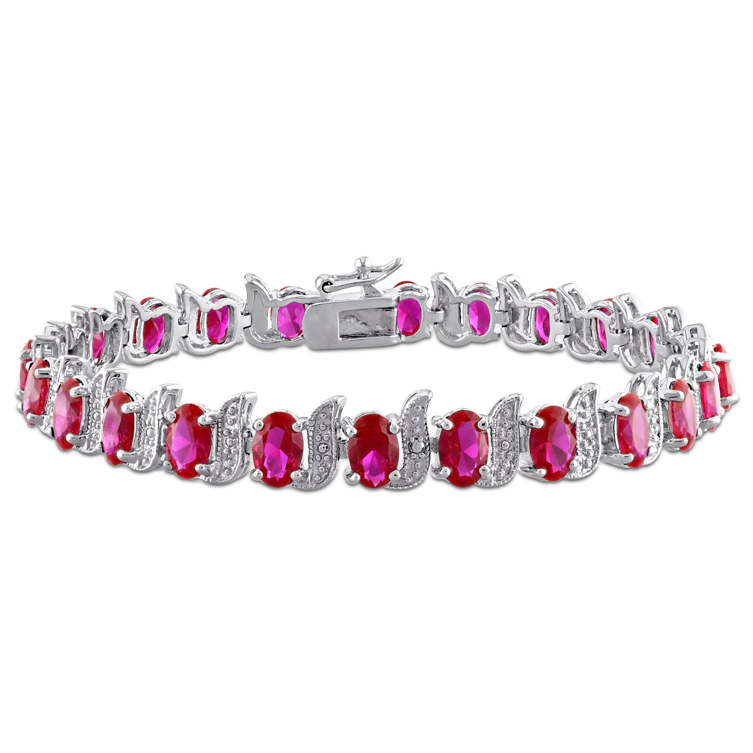 Crafted in sterling silver with 18ct total gemstone weight (TGW) of created rubies, designed in an S-link pattern.