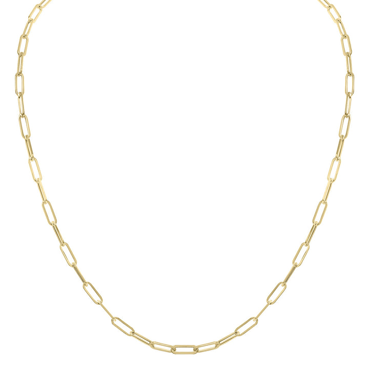 Crafted in 14K yellow gold with paperclip link design, 16 inches in length, finished with a lobster clasp.