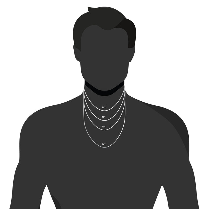 Made from 14k white gold. Chain measures 1.4mm wide and 18 inches long. Lobster clasp closure.