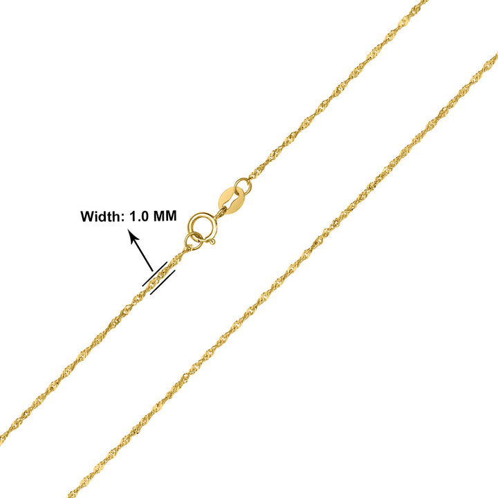 10K Yellow Gold 1Mm Singapore Chain With Spring Ring Clasp - 16 Inch
