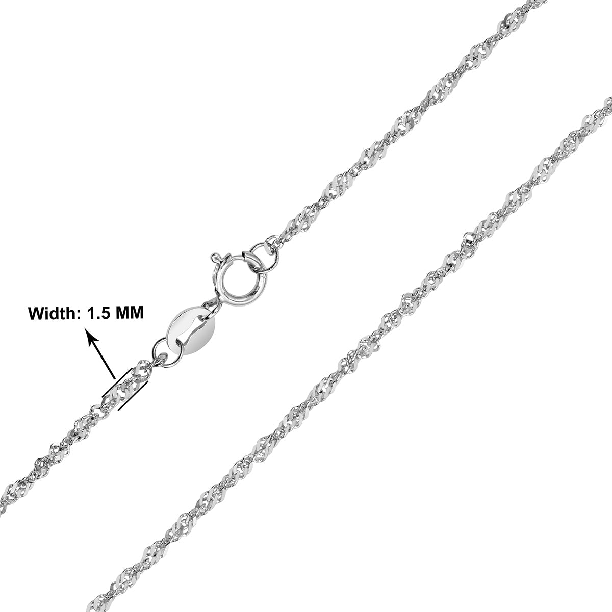 10K White Gold 1.5Mm Singapore Rope Chain With Spring Ring Clasp - 16 Inch