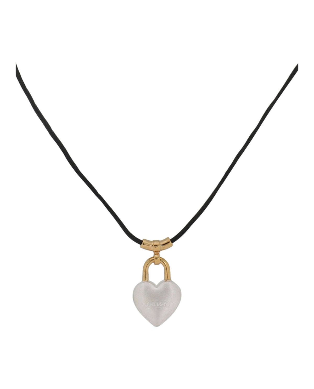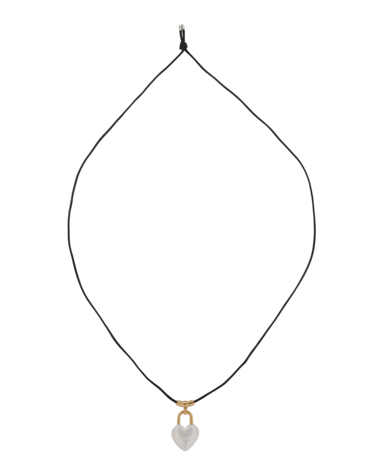 This Heart Padlock Pendant Necklace by AMBUSH plays with iconic symbolism in a modern, edgy execution. Featuring a classic heart-shaped charm with a multitonal finish and engraved logo, the piece is suspended from a generous calfskin leather and sterling silver tie-style necklace. Bold yet sentimental, it’s an artistic reflection of contemporary love.