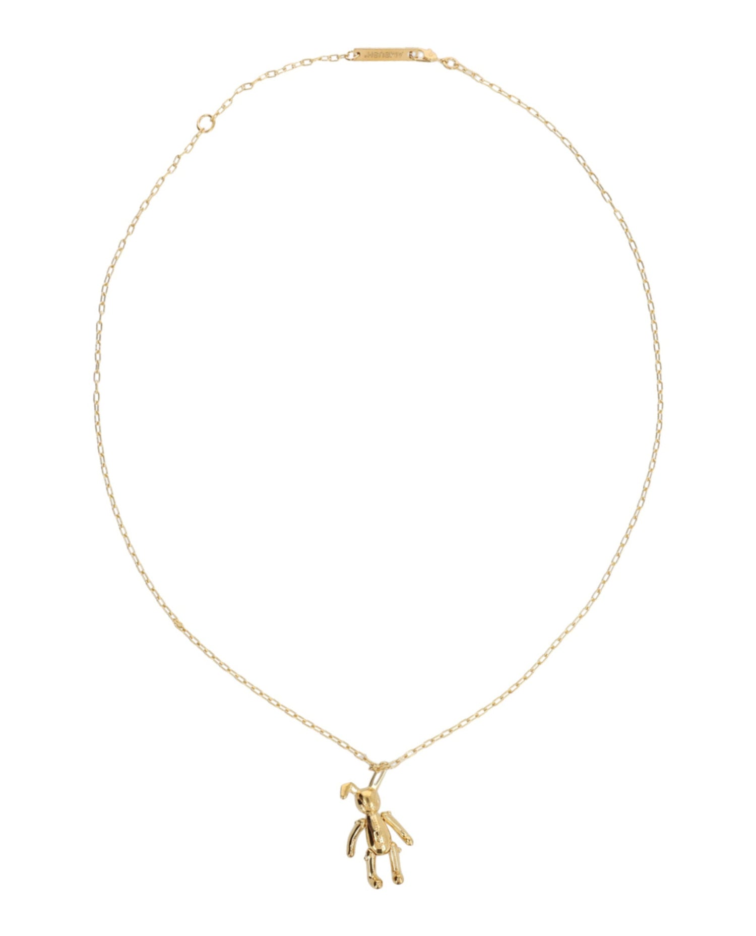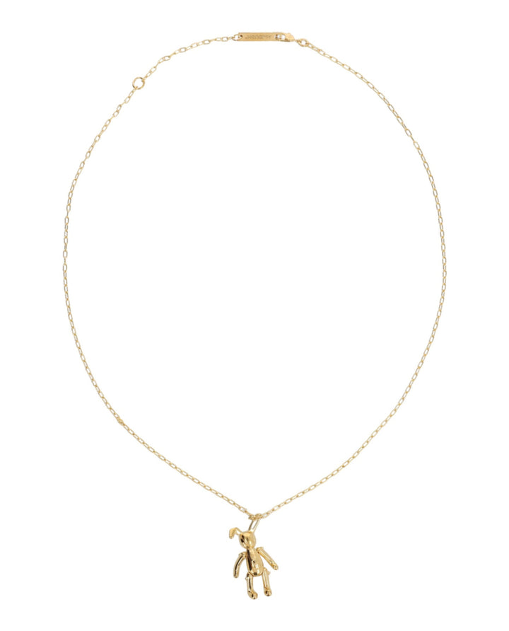 This Bunny Charm Necklace by AMBUSH brings a playful yet elevated touch to your accessory lineup. Featuring a sculptural bunny charm with gold-tone detailing and an engraved logo, the piece adds an element of cheeky charm to your look. The oversized drop and long chain deliver drama and versatility, while maintaining the brand’s bold design language.