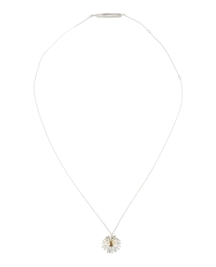 This Daisy Charm Necklace by AMBUSH channels youthful whimsy through a refined lens. The dainty daisy charm is a playful yet delicate detail, bringing a sense of innocence and joy to the piece. With its minimalist silhouette and silver-tone hardware, this necklace makes an elegant statement on its own or can be easily layered for a more expressive look. Perfect for those who embrace nature-inspired motifs with modern flair.