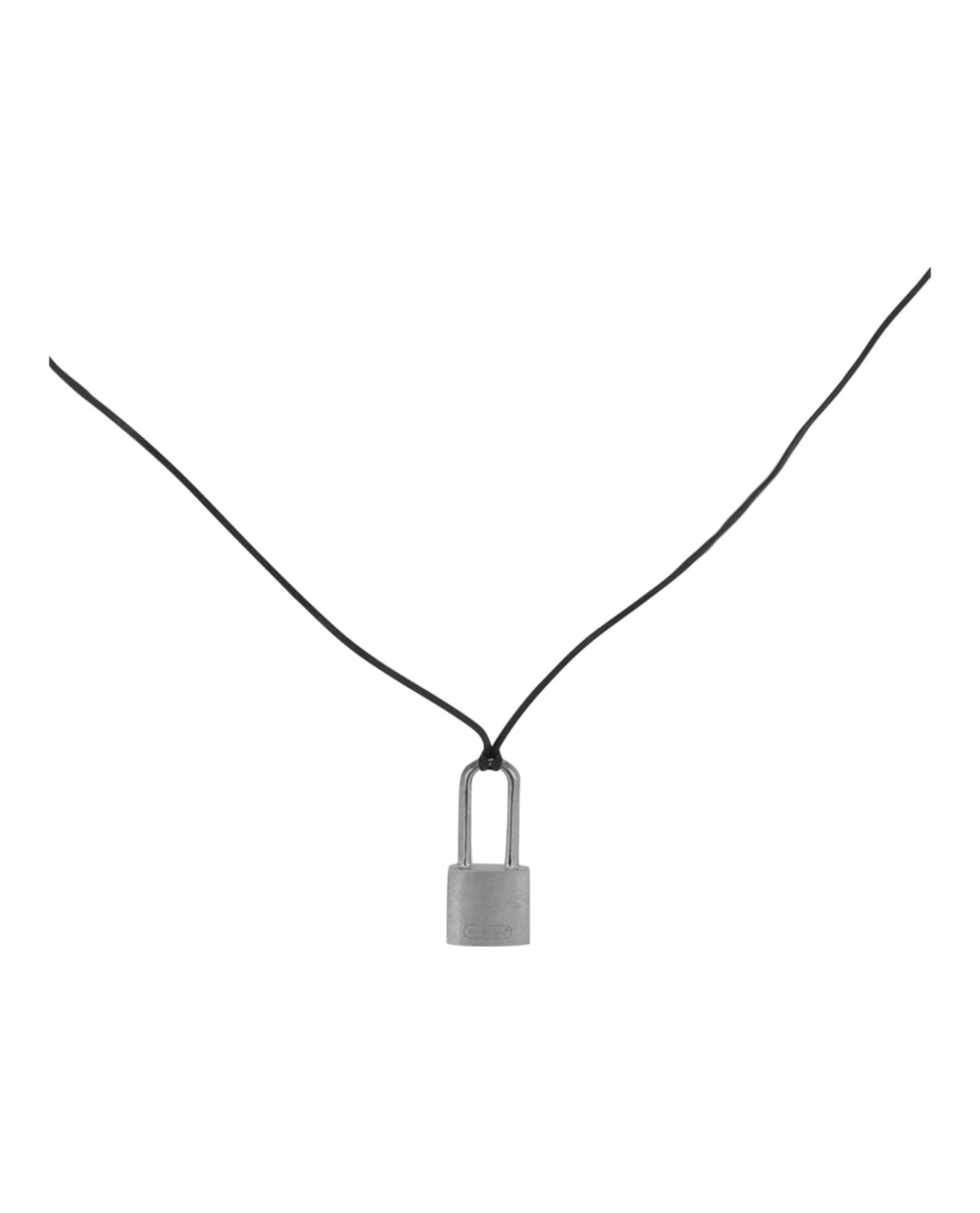 This Small Padlock Necklace by AMBUSH is a playful yet luxurious piece designed with contemporary edge. The calfskin leather tie closure and silver-tone padlock charm blend softness with bold statement energy, capturing AMBUSH’s signature avant-garde aesthetic. Perfect for layering or wearing as a unique focal point.
