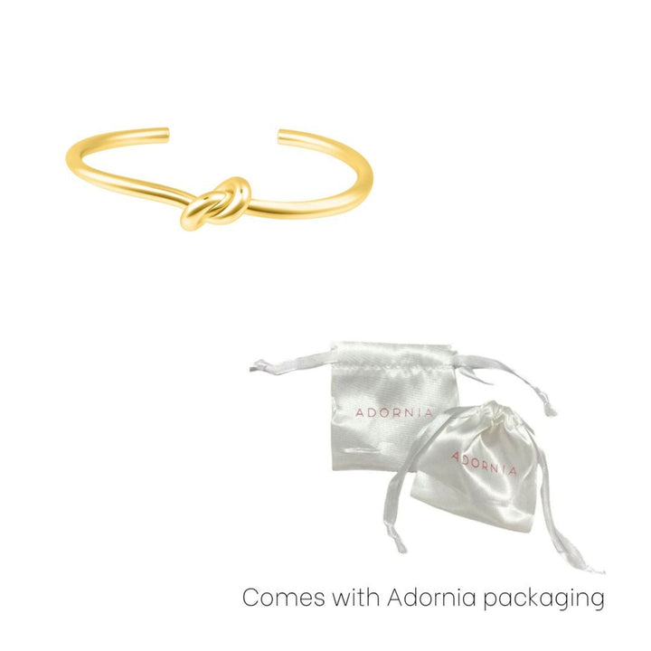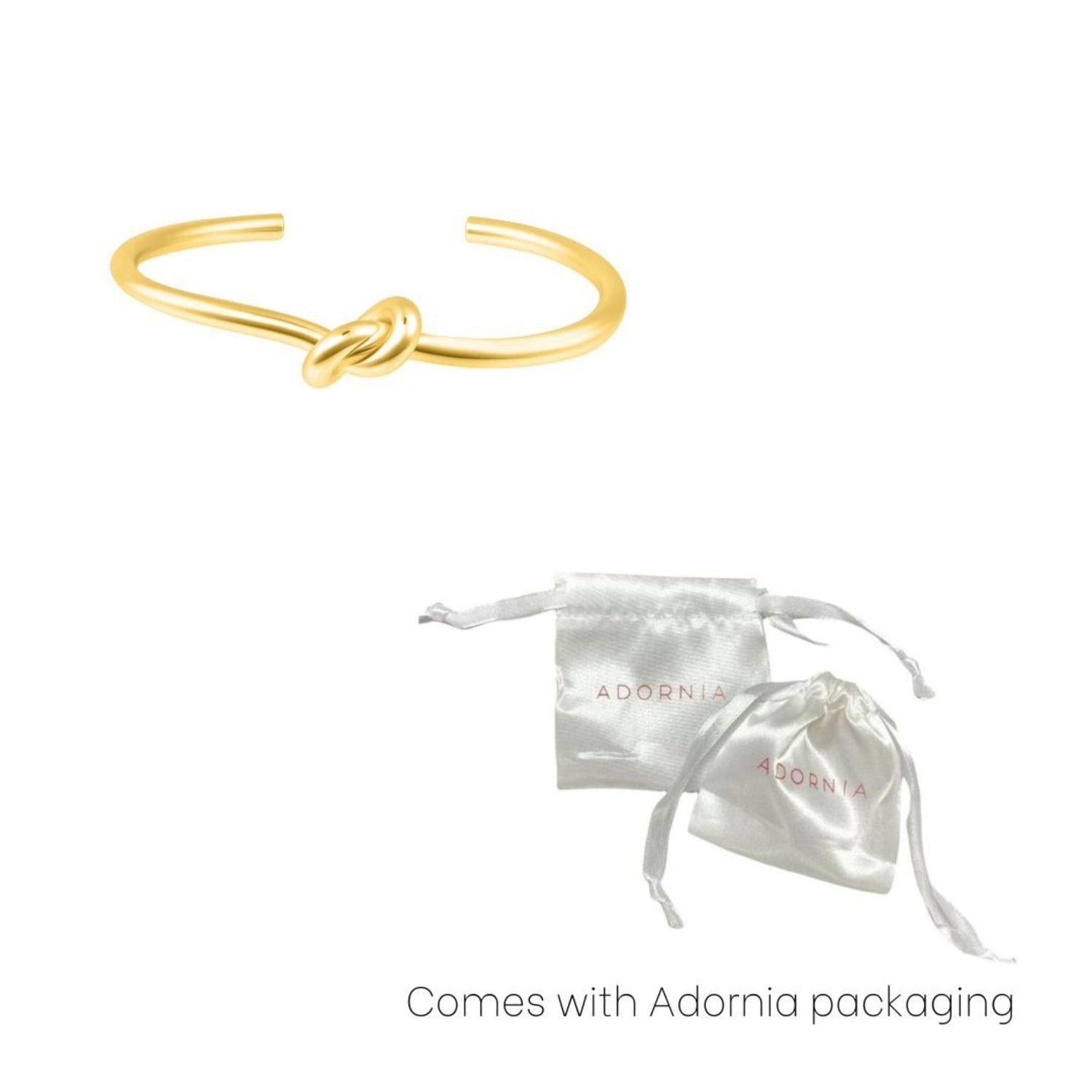 The 14k Gold Plated Knot Cuff Bracelet by Adornia is an effortlessly chic statement piece. Its knot design symbolizes connection and unity, ideal for wearing solo or stacked.