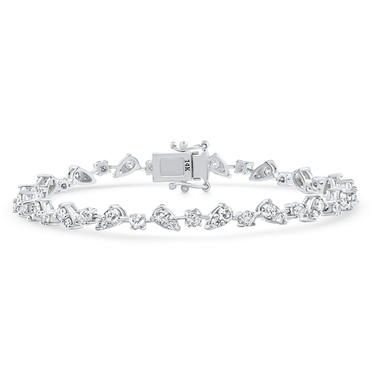 3.43Ct 14k White Gold Natural Real Diamond Pear Frame Tennis Bracelet 7' Women's