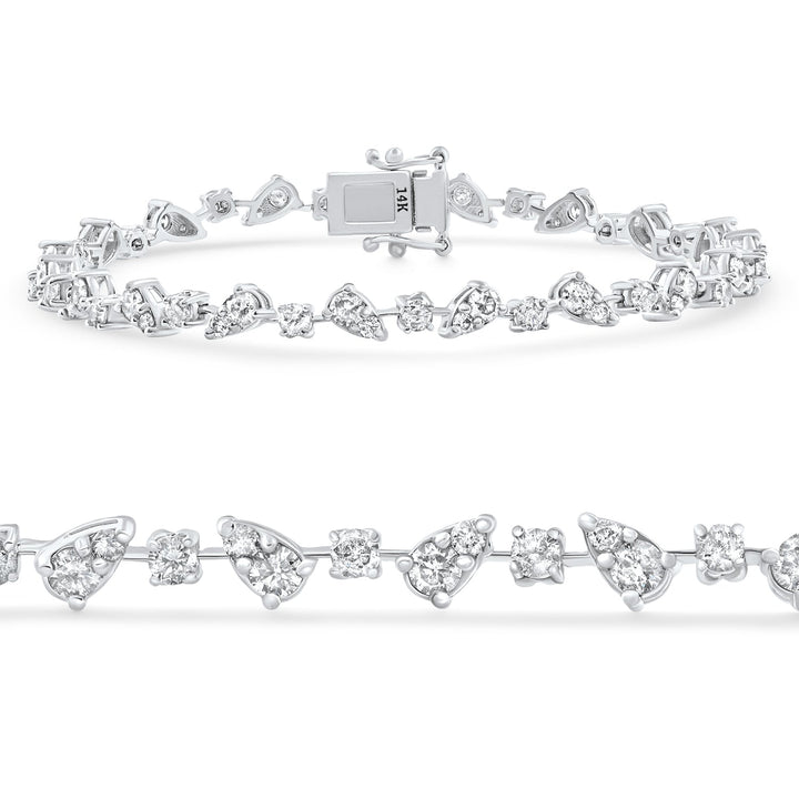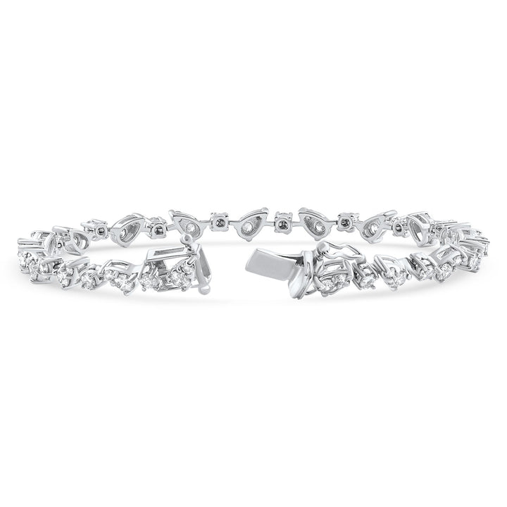 Crafted in 14k white gold with 57 round brilliant cut natural diamonds (I1 clarity), totaling 3.43 carats. Double lock closure; 7' length.