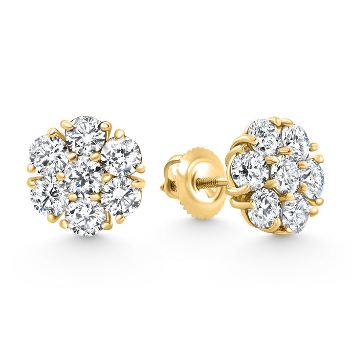 F/VS 3.60Ct Diamond Cluster Pave Studs Screwback Earrings 14k Gold Lab Grown