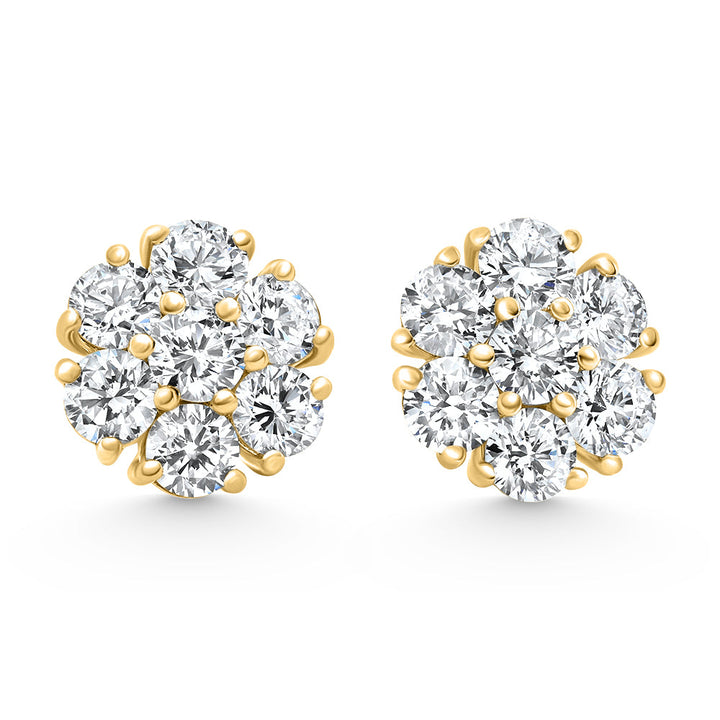 Handcrafted in solid 14k gold with seven round cut white lab-grown diamonds in each earring, totaling 3.60 carat weight. Secured with 14k gold screw backs.