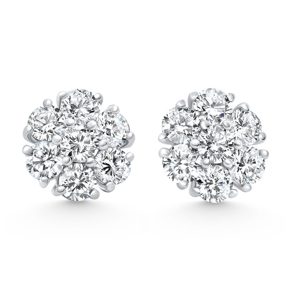 These F/VS 3.60Ct Diamond Cluster Pavé Stud Earrings by Pompeii3 are bold and luminous, featuring clusters of lab-grown diamonds for maximum sparkle. Designed for sophisticated glamour with secure screw-back closures.