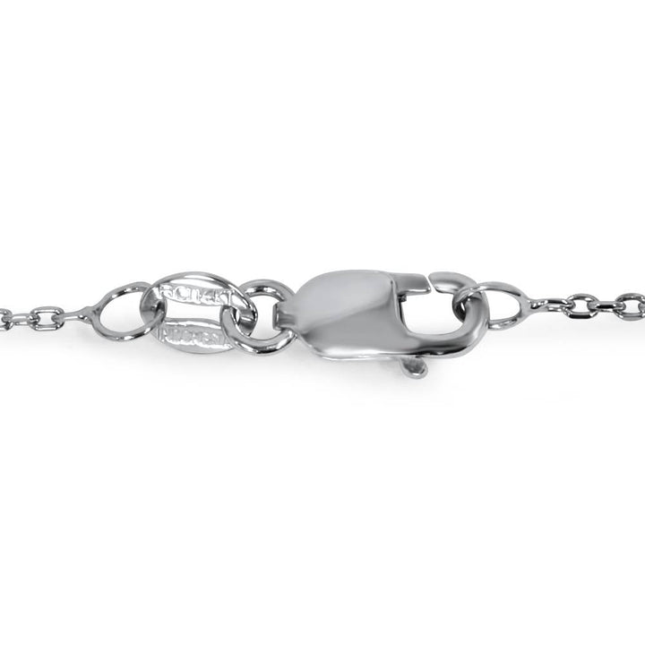 Made from solid 14k white gold with three marquise cut blue sapphires and two round brilliant diamonds. 18' lobster clasp with 2' jump ring for adjustable length.