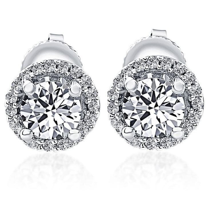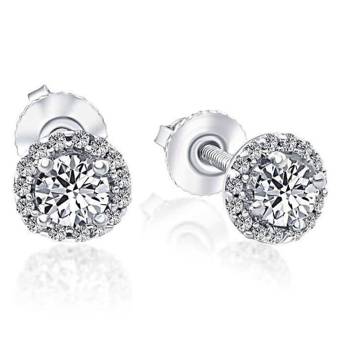 1/2 Ct Halo Diamond Studs With Screw Backs White Gold Lab Grown