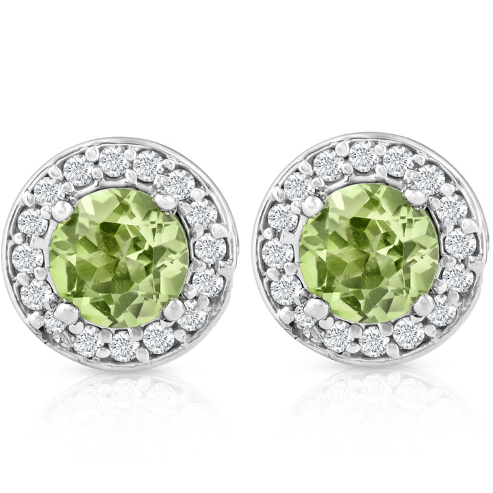 5/8 ct Halo Diamond Peridot Studs 14K White Gold