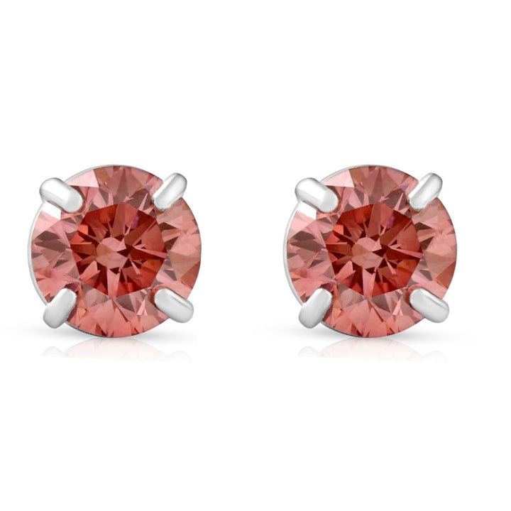 Handcrafted in 14k white gold with two round brilliant cut pink lab-grown diamonds totaling 3/8ct, set in high-polished basket-style screw back mountings.