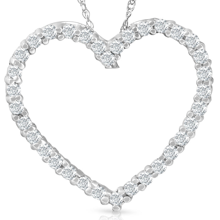 This 10K White Gold 1/2ct Lab Grown Diamond Heart Pendant by Pompeii3 radiates charm and romance, with a heart-shaped design glistening with 34 brilliant lab-grown diamonds for a look that’s both classic and contemporary.