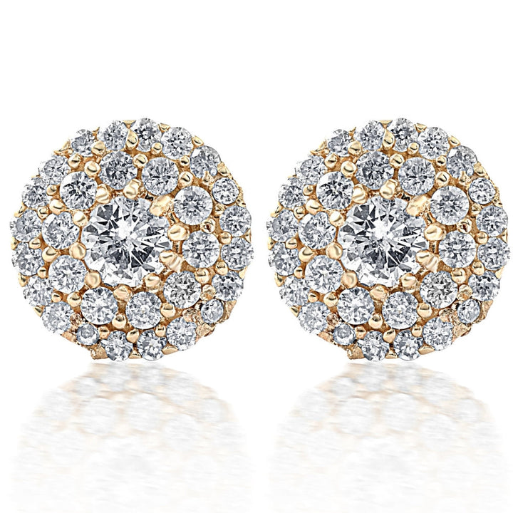Double Halo Diamond Screw Back Studs 1/2 Carat TW 14k Yellow Gold
