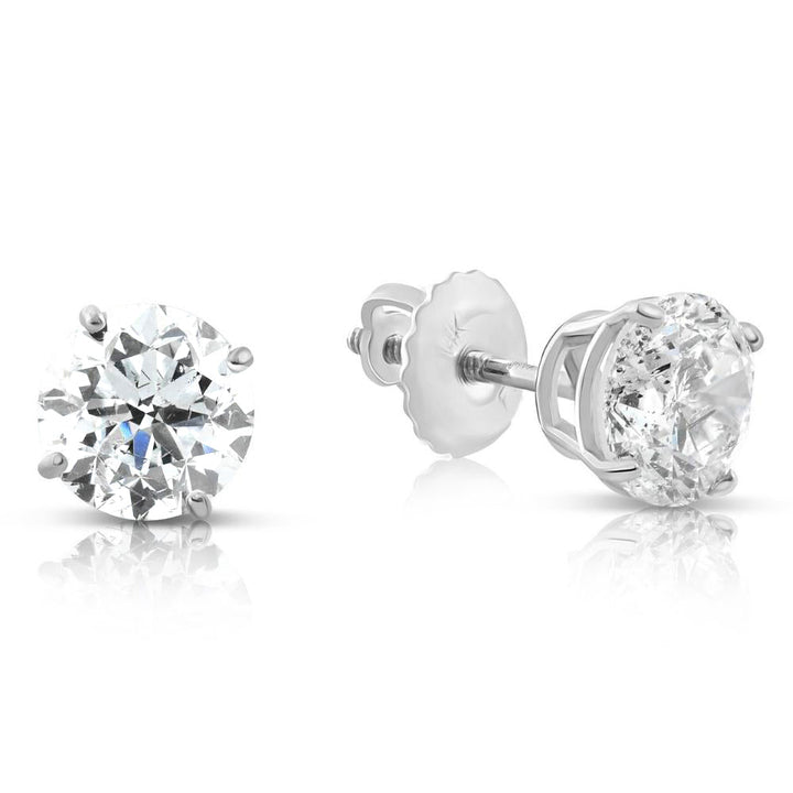 Prong set in solid 14k white gold with round brilliant cut natural diamonds totaling 1.70 carats. Secured with screw backs.