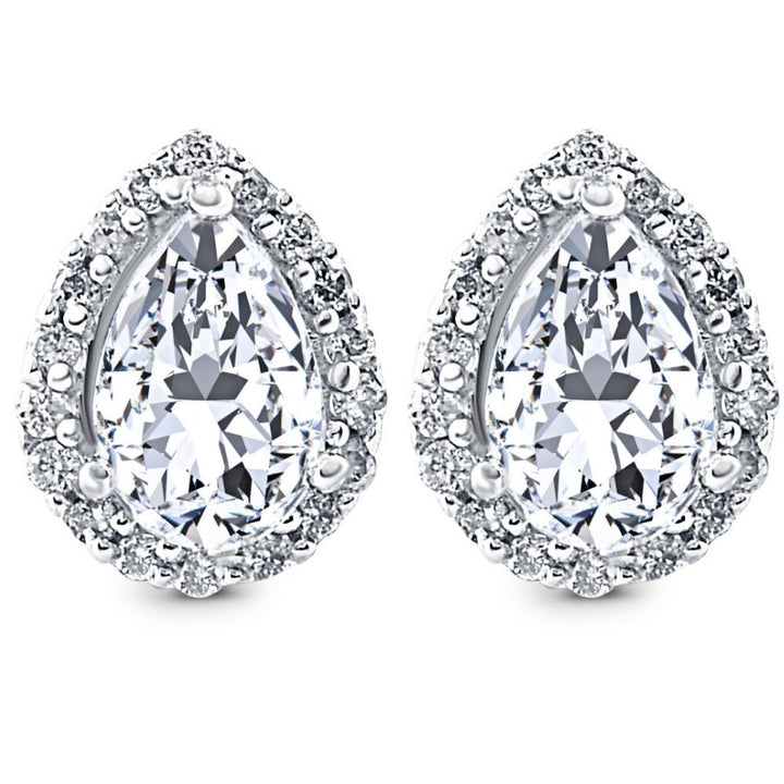 1/2 CT Pear Shaped Halo Screw Back Diamond Studs White or Yellow Gold Earrings