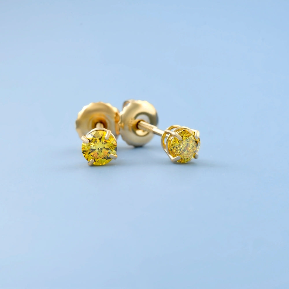 1/2 CT Fancy Yellow Diamond Studs 14K Yellow Gold Screw Back Lab Grown Earrings