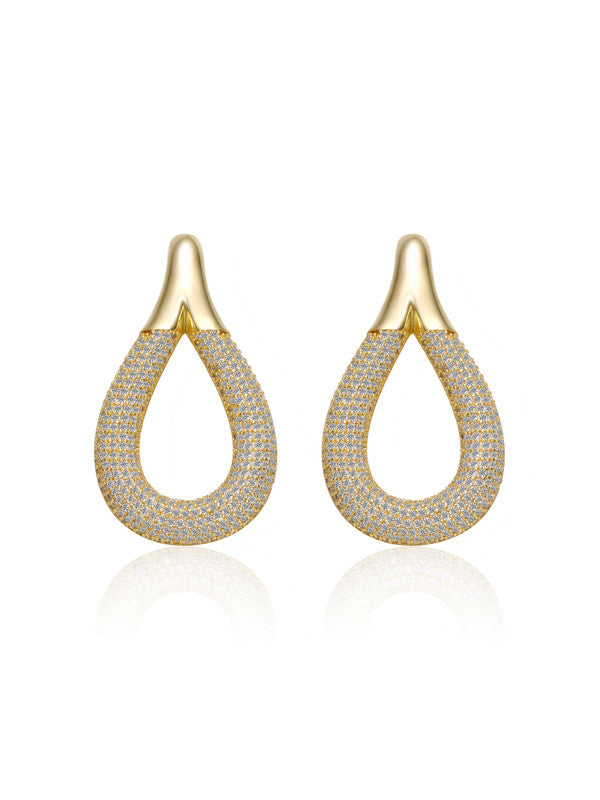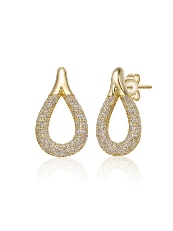 Crafted from 14k gold-plated metal featuring round brilliant-cut cubic zirconia pave stones. Length: 37mm, secured with butterfly backs.