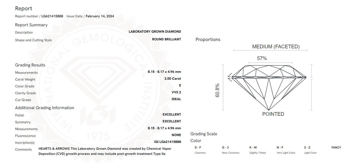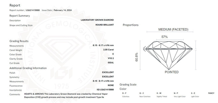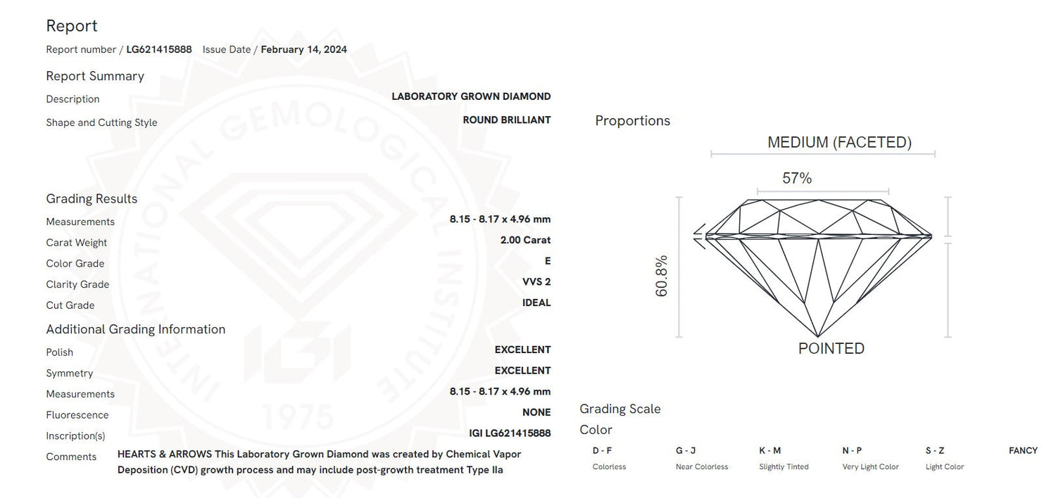 Certified 2CT Lab Grown Diamond Solitaire Engagement Ring 14k Yellow Gold E/VVS2