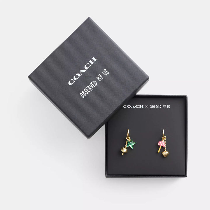 Coach Coach X Observed By Us Mismatch Star And Mushroom Huggie Earrings