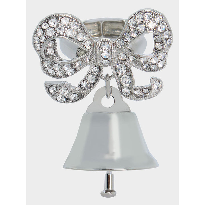 This Prenup Bell Ring Crystal by Betseyjohnson is a whimsical cocktail ring perfect for a fun, bold statement. Featuring a glistening bow paired with a dangling cowbell, this playful ring adds a touch of charm to any outfit.