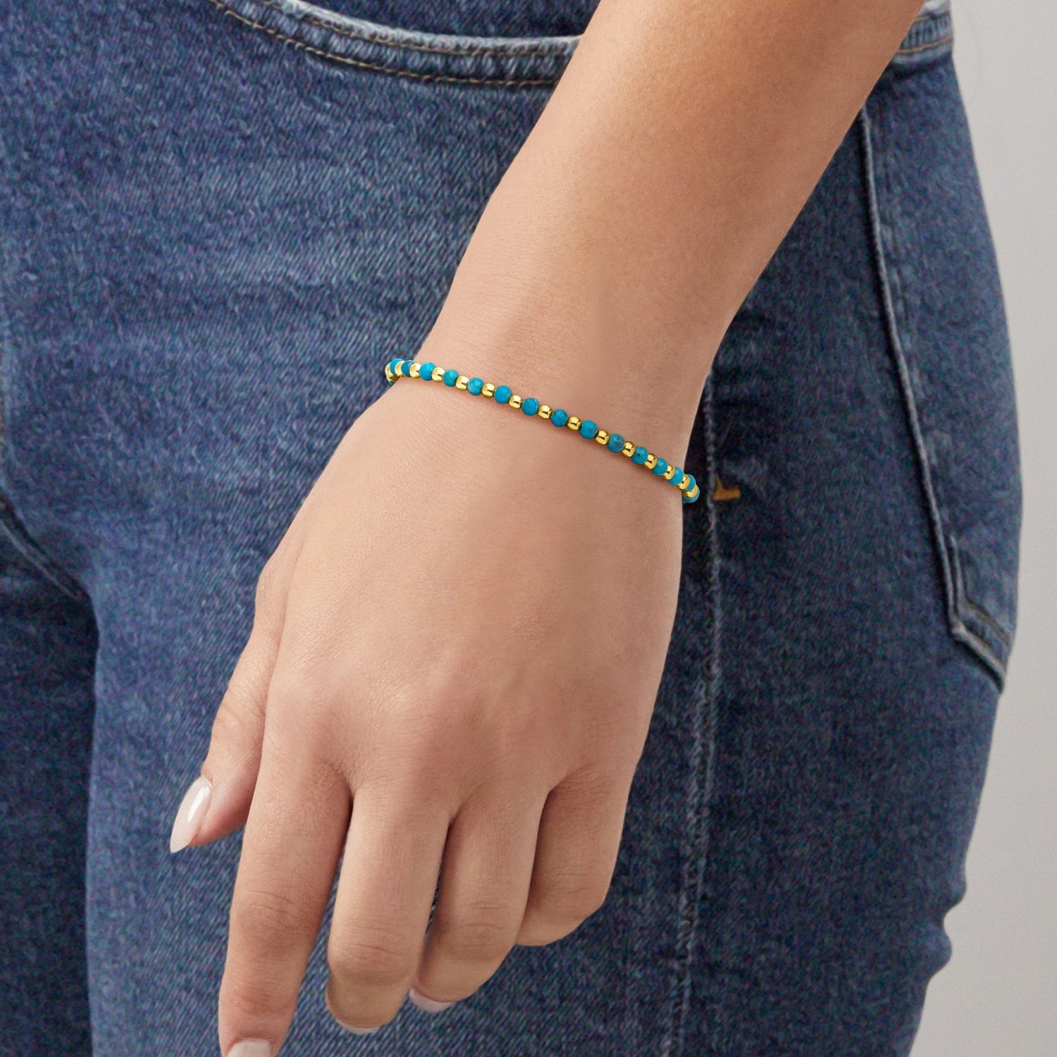 Canaria 3-3.5mm Turquoise Bead Stretch Bracelet in 10kt Yellow Gold