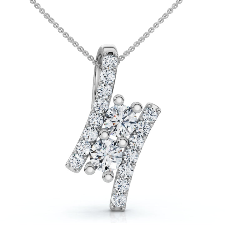 1/2ct Two Stone Diamond Pendant Gold Necklace Lab Grown 18' Lab Grown