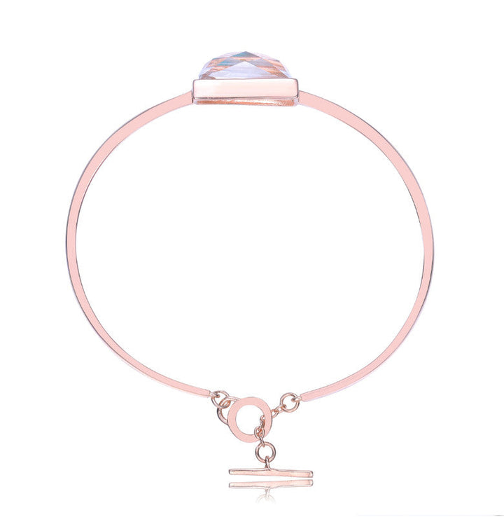 This Genevive Sterling Silver Rose Gold Plated Cubic Zirconia Bangle Bracelet is a perfect blend of dainty elegance and bold design. The bracelet features bezel-set quartz stones in a sleek bangle form, giving it a sophisticated yet understated feel. Crafted from sterling silver and plated in rose gold, it’s ideal for both daily wear and special occasions.