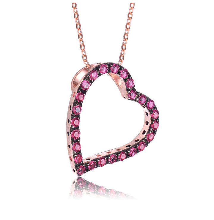 Sterling Silver With Rose Gold And Black Plated Pink Round Cubic Zirconia Open Heart Necklace