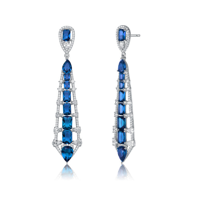 Sterling Silver With Colored Cubic Zirconia Ladder Style Dangle Earrings