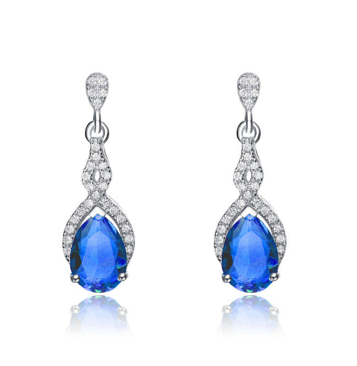 Sterling Silver With Colored Cubic Zirconia Teardrop Earrings