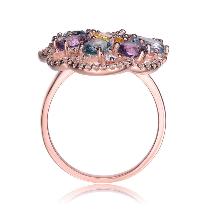 GENEVIVE Sterling Silver Rose Gold Plated Multi Colored Cubic Zirconia Cocktail Ring