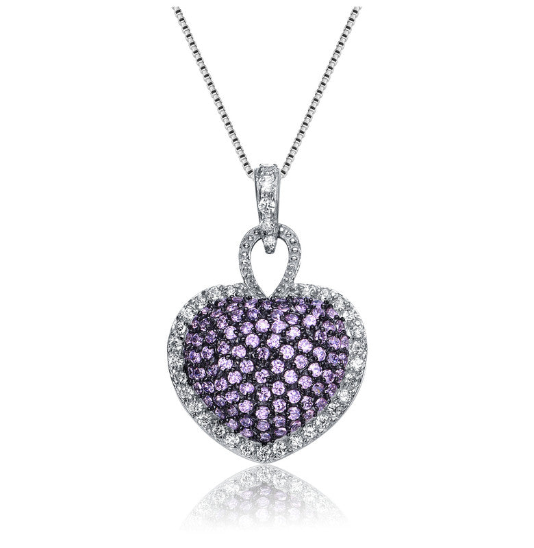 Sterling Silver Purple Cubic Zirconia Pave Heart Necklace