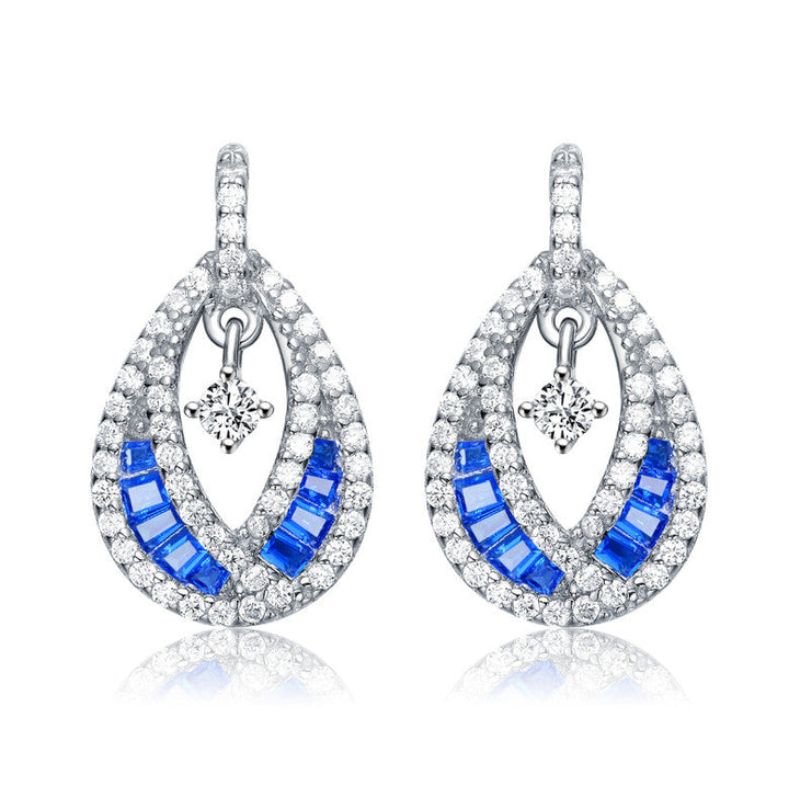 Genevive Jewelry Sterling Silver Sapphire Cubic Zirconia Pear Drop Earrings