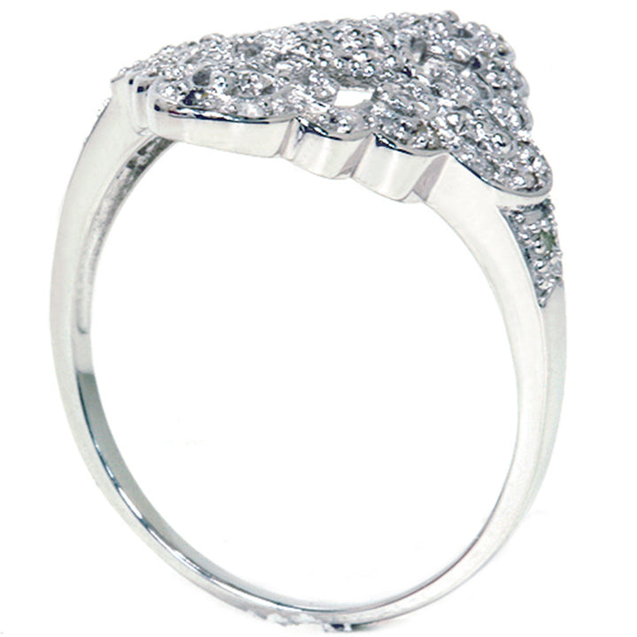 This 1/5ct Vintage Diamond Ring by Pompeii3 evokes old-world elegance with a sparkling modern touch. Designed in 10K white gold, the vintage-inspired setting showcases 38 round-cut diamonds, carefully arranged to create a delicate and timeless motif. A beautiful piece that speaks to both heritage and refinement, it’s perfect for those drawn to romantic, heirloom-style jewelry.