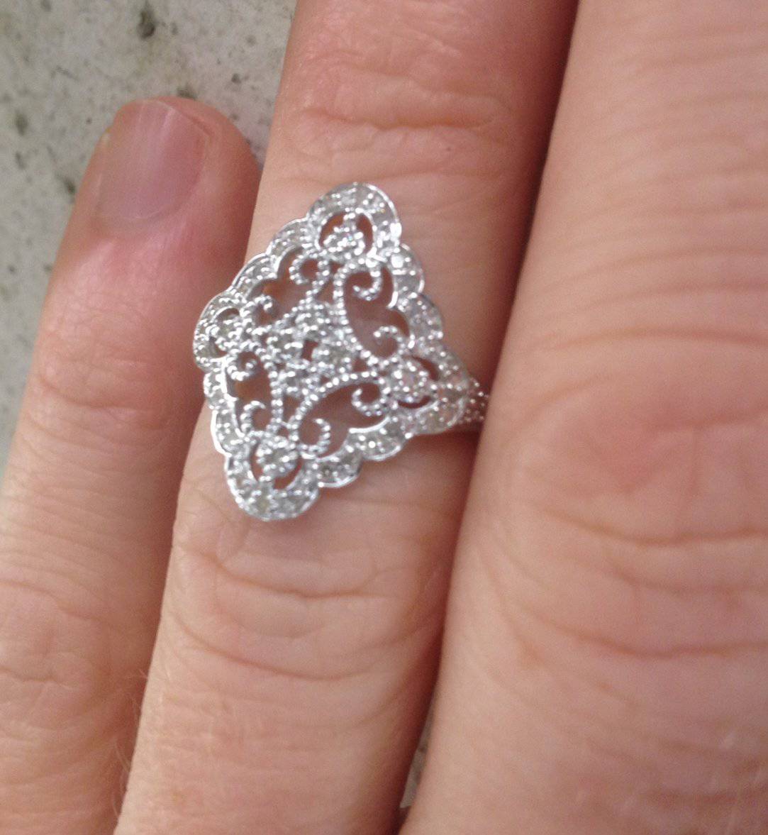 1/5ct Vintage Diamond Ring 10K White Gold Size Selectable
