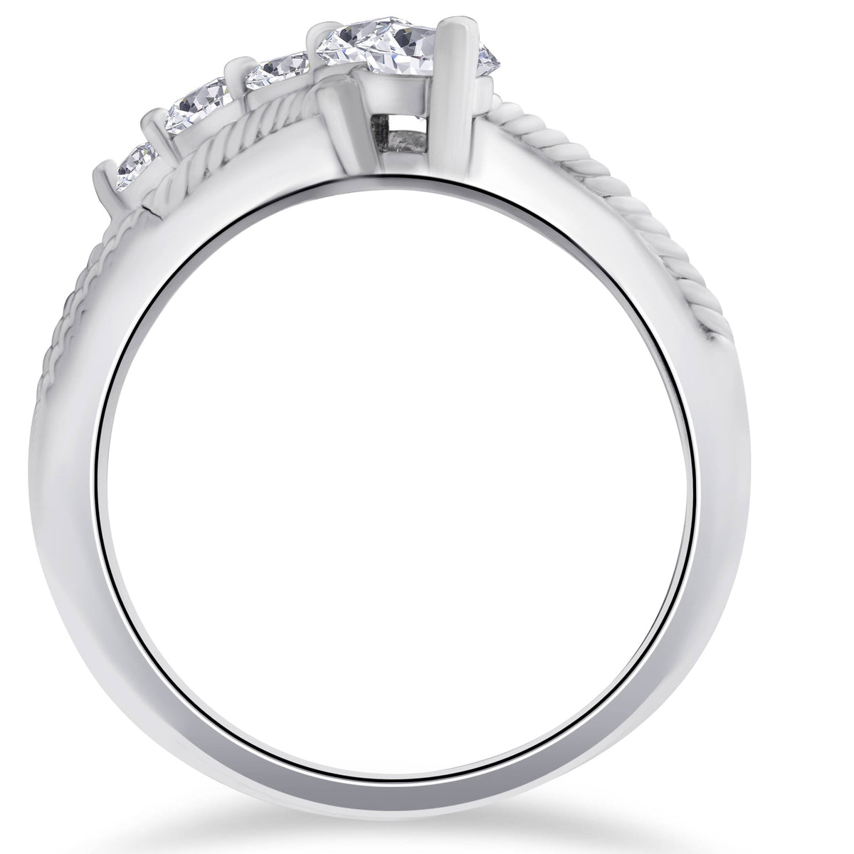 1/2 CT Graduated Diamond Journey Right Hand Ring 10K White Gold Size Selectable
