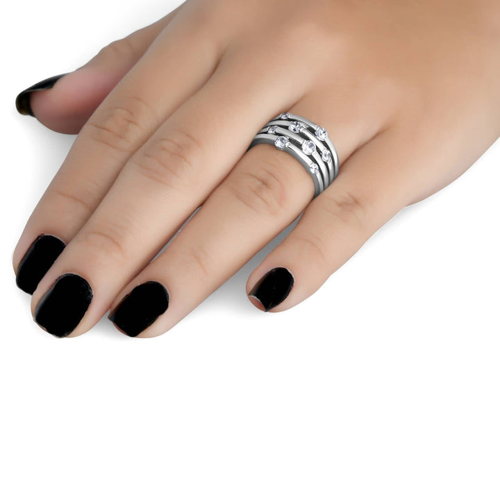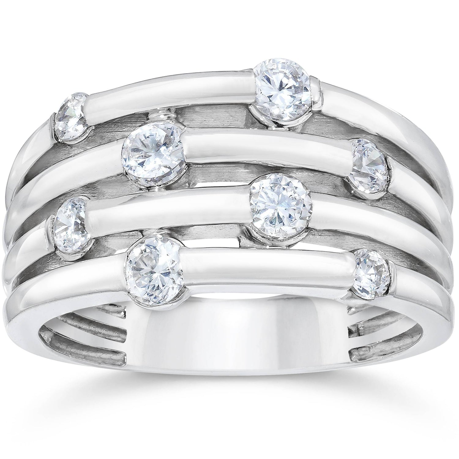The 14K White Gold 1ct Real Diamond Right Hand Ring by Pompeii3 features a full sparkling carat of G/H-colored, II clarity diamonds, set in a polished 14K white gold band. This ring, with its stylish 11mm width tapering to 4mm, makes a statement of luxury and sophistication, perfect for any fine jewelry collection.