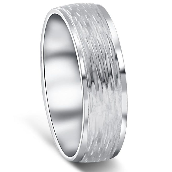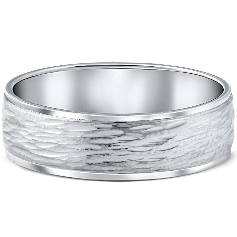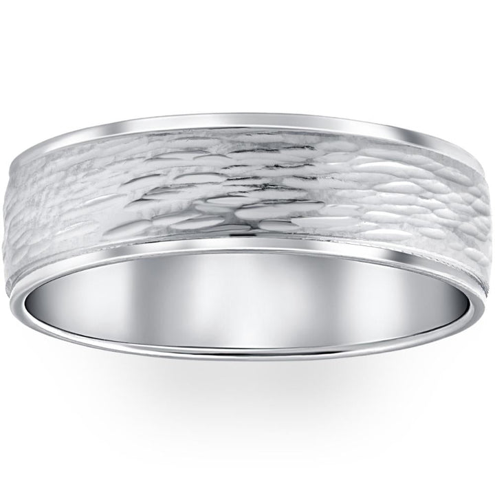 Hand Etched 6mm Dome Wedding Band 10K White Gold Size Selectable