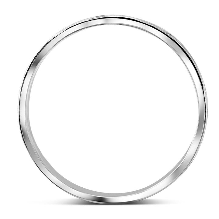 Crafted in 10K white gold. Features a hand-etched design with polished edges. Measures 6mm wide.