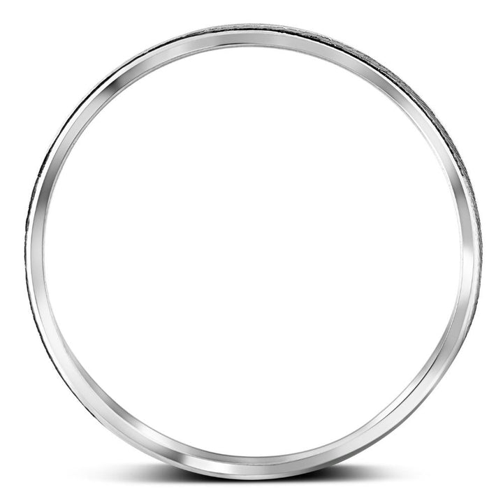 Handcrafted in 14K White Gold, measuring 6mm in width. Comfort fit with matte finish center and polished beveled edges.