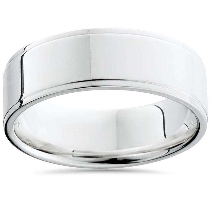 This Inlay Polished Band 950 Platinum Size Selectable by Pompeii3 features a flat step-cut design with two channels near both edges, offering a sleek and modern appearance. The band is crafted in solid 950 platinum, known for its durability and lustrous finish. Measuring approximately 6mm in width, it’s an ideal choice for a wedding band with a high-polished, refined finish.